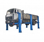 г/п. 10 тонн. Четырехстоечный. Электромеханический. Для ремонта грузовых автомобилей отечественного и импортного производства и автобусов на любой ровной площадке. Привод червячный редуктор, с концевыми выключателями нажимного действия, ограничивающими ход каретки. По отдельному заказу комплектуется установочными рамами. Поставляется в 2 вариантах Стандарт (в помещение) и ТЗ (Для эксплуатации на улице).