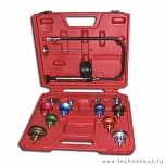 Тестер системы охлаждения предназначен для проверки герметичности системы охлаждения двигателя. Применяется: Mercedes, GM (Buick), Jeep, Peugeot, Subaru, Chrysler, Acura, GM (Nova,Spectrum, Sprint), Mitsubishi, Nissan, Mazda, Toyota, Infiniti, Geo, Suzuki, Isuzu, Ford, Honda. В кейсе 7 предметов.