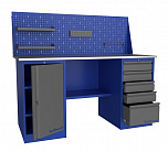 Двухтумбовый. Допустимая нагрузка на столешницу 1000 кг. Опорные элементы выполнены сварными из холоднокатаной стали. Для выполнения сборочных, ремонтных, слесарных, монтажных и других видов работ на производстве, в сервисных центрах, мастерских, гаражах, а также для обучения технологии в учебных заведениях. Комплектуется полкой-стенкой, расположенной под столешницей для удобного размещения габаритного инструмента и оснастки. Размеры верстака: 855x1596x696 мм. Вес: 128 кг. Поставляется в 4 комплектациях на выбор.