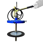 Нагнетатель предназначен для раздачи густой смазки из бочек объемом 190 л. Состоит из 2-х независимых и раздельных насосных систем, что предотвращает попадание отработанной влаги компрессора в емкость с перекачиваемым маслом. Длина шланга: 6 м. Давление смазки: 180-405 бар. Коэффициент передачи давления: 5:1. Производительность: 30 см³/с. Длина раздаточного шланга: 305 см. Вес: 15,5 кг.