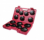 Набор съемников масляных фильтров ("чашки") - 14 шт. Съемники изготовлены в форме чашек из прочного металла и способны выдерживать большие нагрузки. Каждая чашка снабжена усиленной площадкой с посадочным квадратом. Конструкция съемников в форме крышек исключает повреждение масляного фильтра при его снятии и установке. Возможность использовать привод с посадочным квадратом 1/2"; 3/8"; гаечный ключ или торцевую головку на 21 мм.