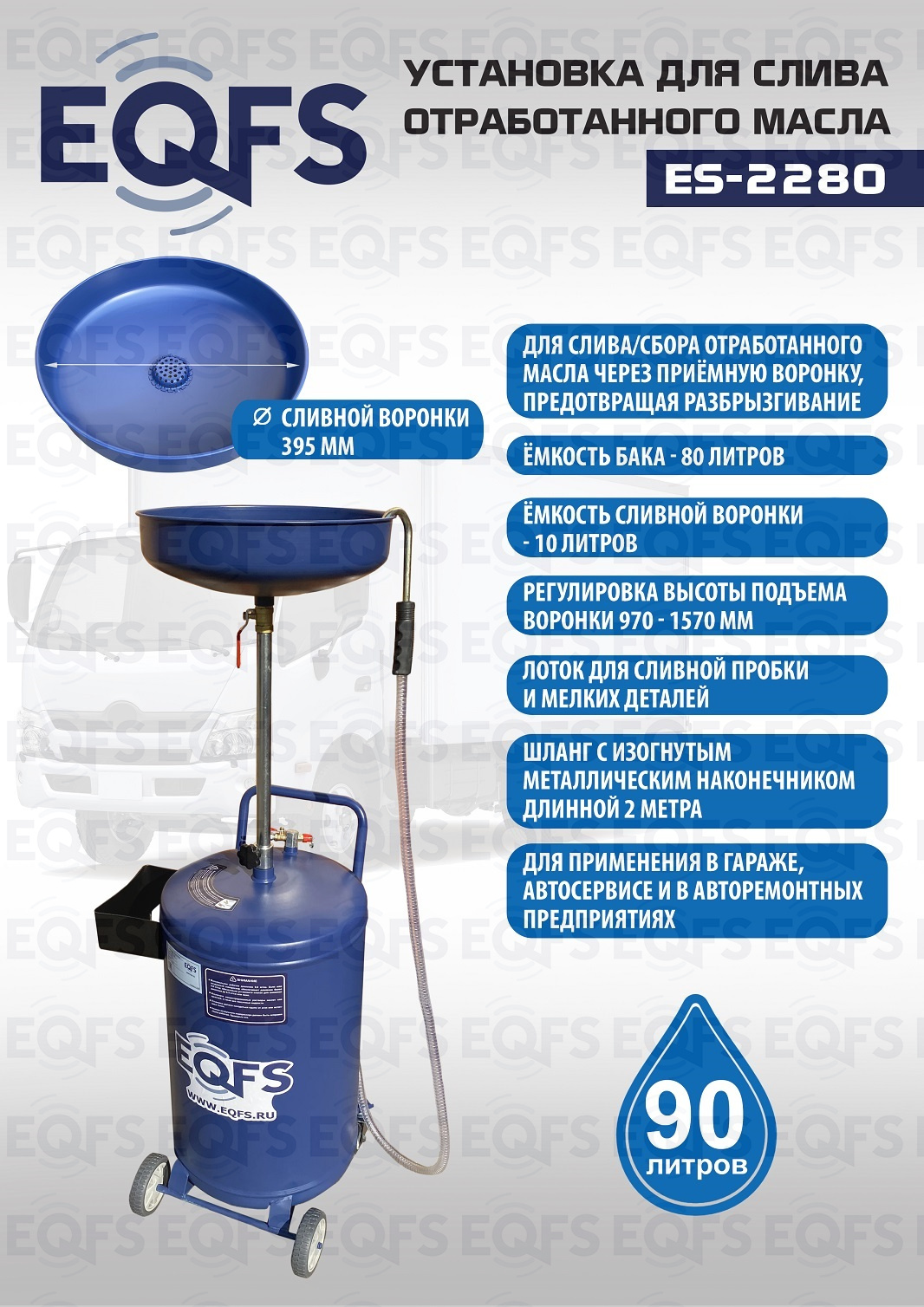 Для слива «отработки» самотёком масла и антифриза из любых транспортных средств. 80л.+10л. приёмная воронка. Регулировка высоты чаши 970-1570мм. Визуальный контроль уровня заполняемости бака. Слив «отработки» самотёком или под давлением. Лоток для сливной пробки/инструмента.