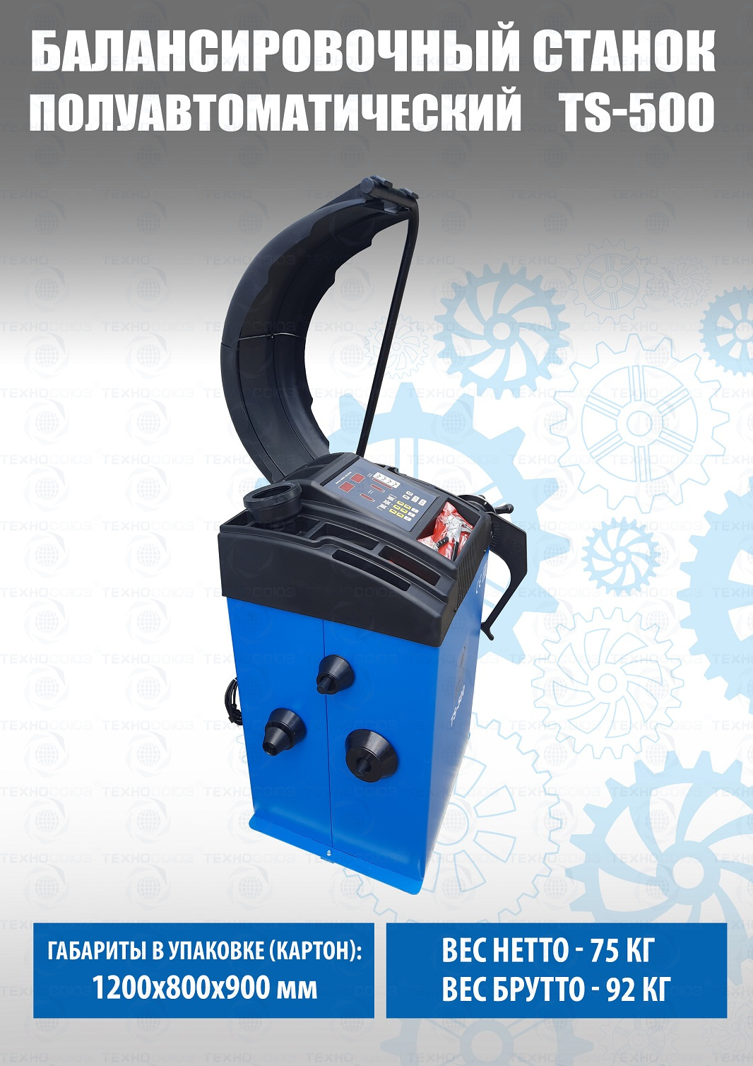 Полуавтоматический балансировочный стенд TS-500 для колес легковых автомобилей, мотоциклов и легких грузовиков с диаметром диска с резиной до 760 мм. Размеры диска: ширина 3–9” (76-228 мм) , диаметр диска" - 10–21” (254-533 мм). Вал-36 мм. Максимальный вес колеса с диском – 65 кг. C кожухом. Точность ±1гр. Напряжение 220В. . В комплекте: кожух с автозапуском + клещи + кронциркуль + быстрозажимная гайка + набор конусов
