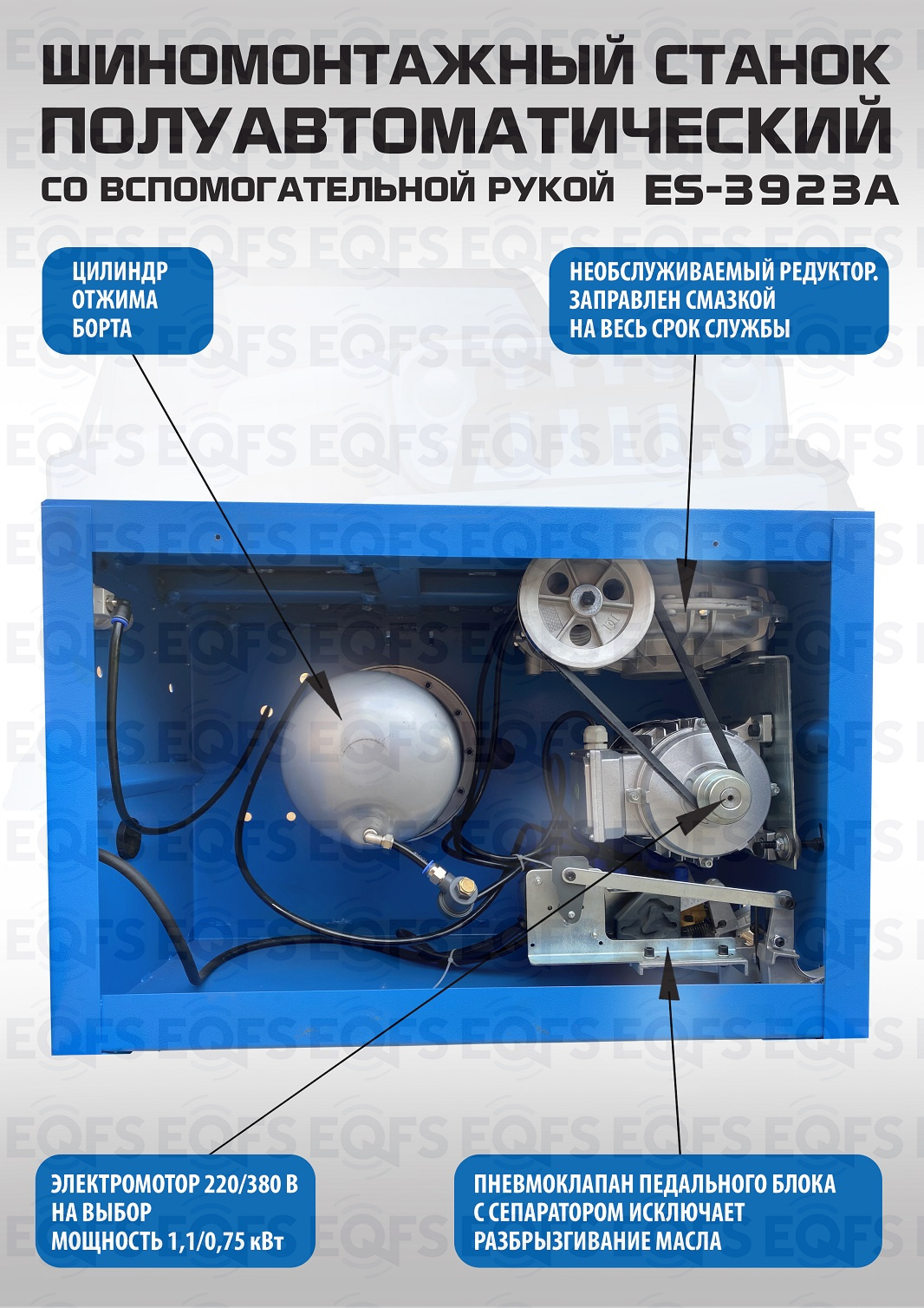 Шиномонтажный станок полуавтоматический ES-3923A. Для больших и широких колес. Комплектуется встроенным увеличенным бустером емкостью 24 литра (взрывная подкачка) + дополнительной вспомогательной рукой для работы с низкопрофильными шинами и RanFlat! Для колес - Внешний зажим 12-22”. Внутренний зажим 13-24”. Напряжение 220В/380В. В комплекте: пистолет для подкачки шин + монтажка + регулятор давления с влагоотделителем и манометром. Напряжение 220В/380В