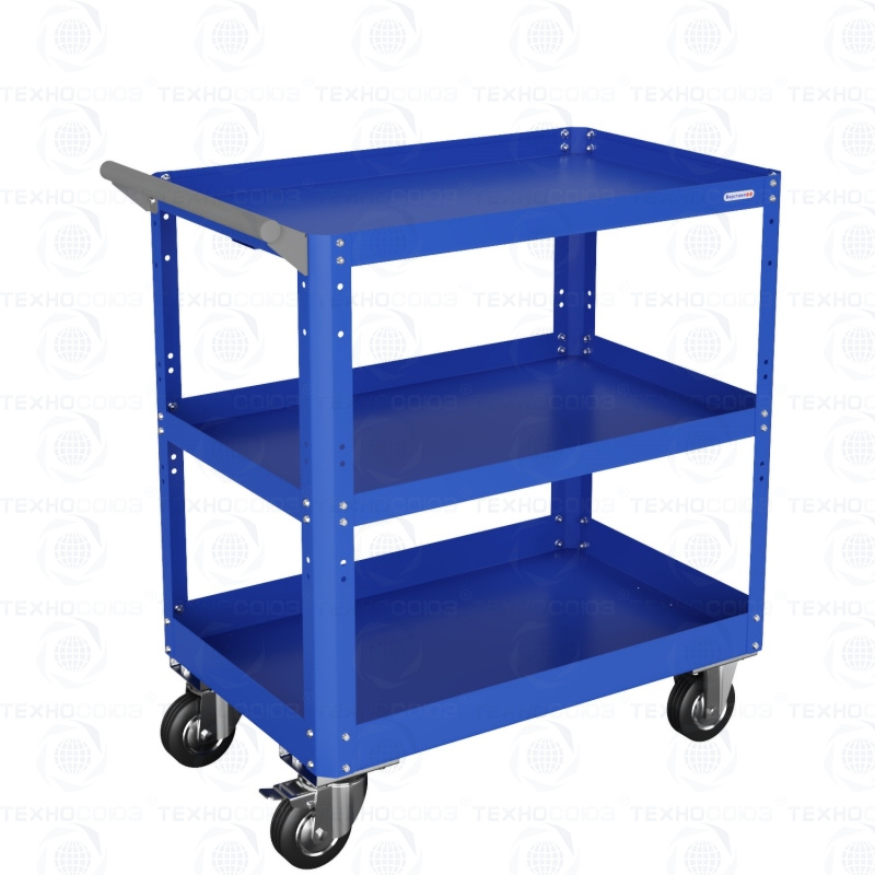 Размер 800х600х450мм. Общая равномерно-распределённая нагрузка на тележку - до 100кг. Корпус выполнен из листовой стали толщиной от 0,6 до 1,5мм., покрыт полимерной порошковой краской. Верхняя и средняя полка имеют высоту борта 40мм., нижняя полка имеет высоту борта 60мм