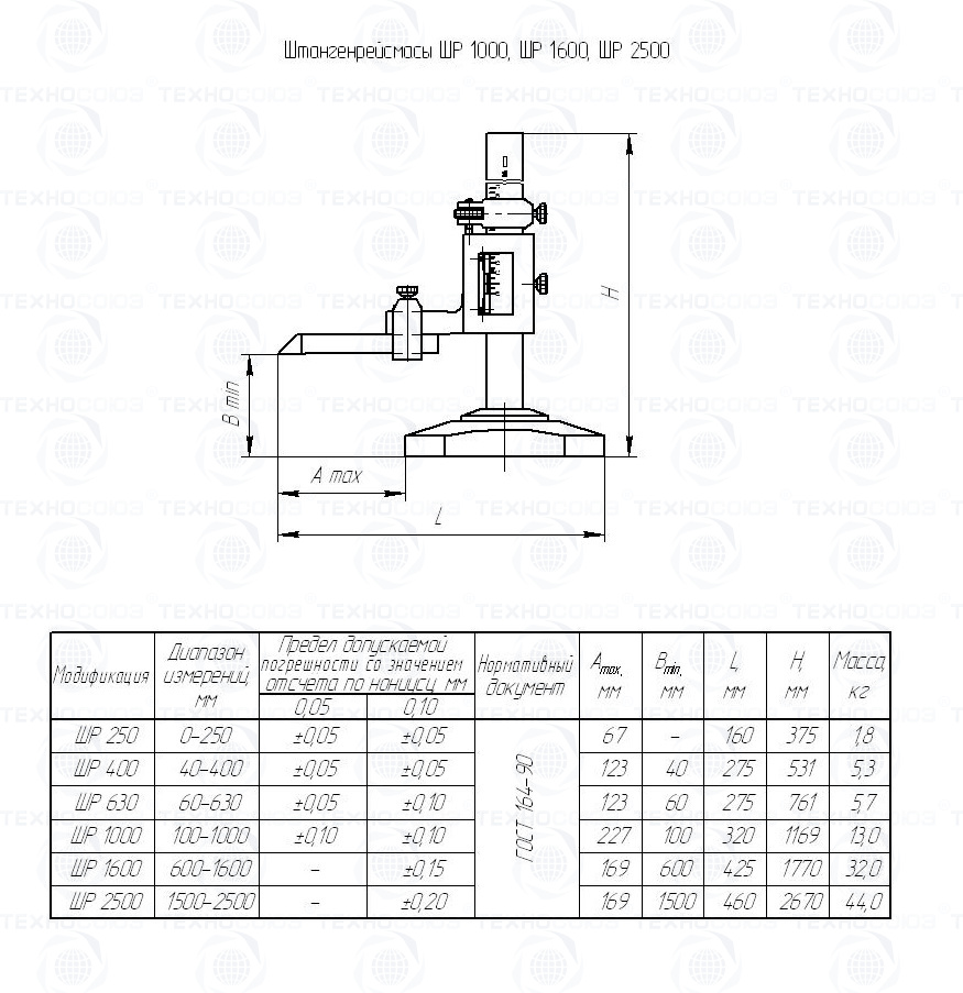 Цена деления 0,15 мм. Диапазон измерения от 600-1600 мм. Предназначены для измерения и разметки размеров. Вдоль штанги перемещается рамка, к которой прикреплена разметочная или измерительная ножки. Разметочная ножка оснащена твердым сплавом. Рамка имеет нониус, а для облегчения установки на требуемый размер снабжена микрометрической подачей. Основные детали штангенрейсмаса хромированы. ГОСТ 164-90. Поставляется в двух вариантах с поверкой и без поверки!