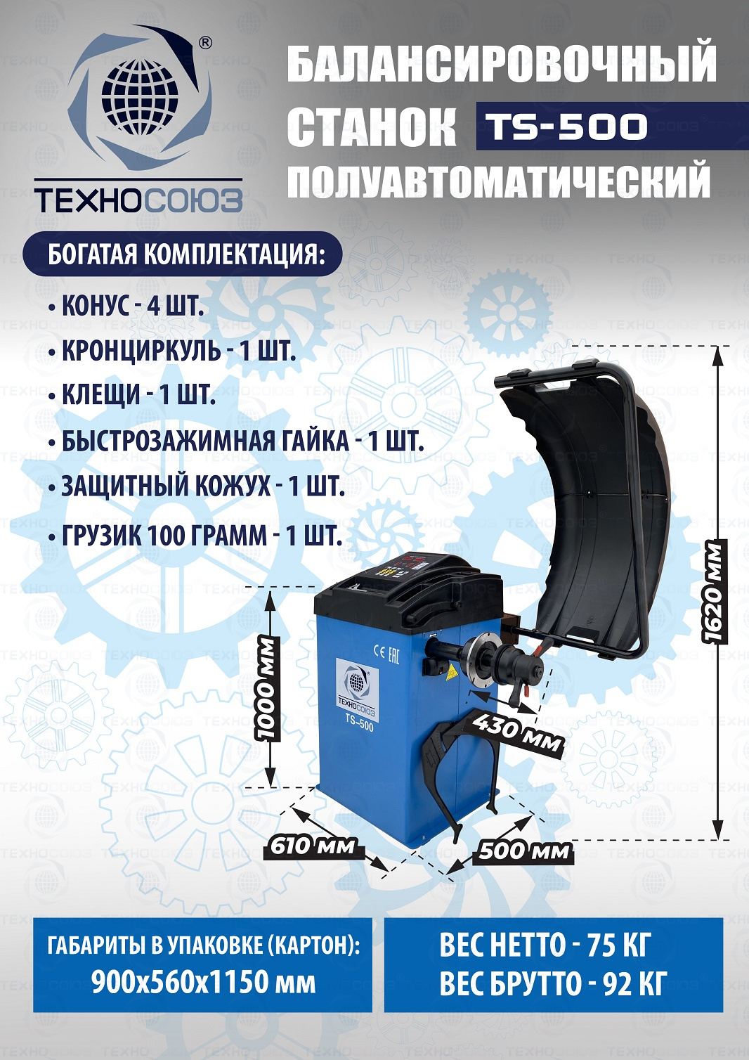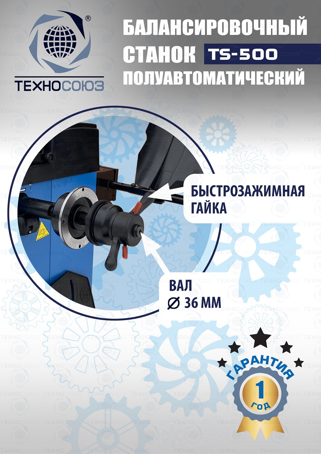 Балансировочный станок для легковых авто и «Газелей. Полуавтомат. Лазерная указка места установки грузика. Режимы работы: STANDART, STATIC, ALU1, ALU2, ALU3. Автокалибровка. Режим оптимизация дисбаланса. Режим MOTO. Автозапуск при опускании кожуха. Для легковых авто и «Газелей» с диаметром диска с резиной до 760 мм. Размеры диска: ширина 1,5–20” (40-510 мм), диаметр диска 10–24” (256-610 мм). Макс. вес колеса с диском ≤ 65кг. Вал-36 мм.Точность ±1гр, 220 В. Гарантия 12 мес.
