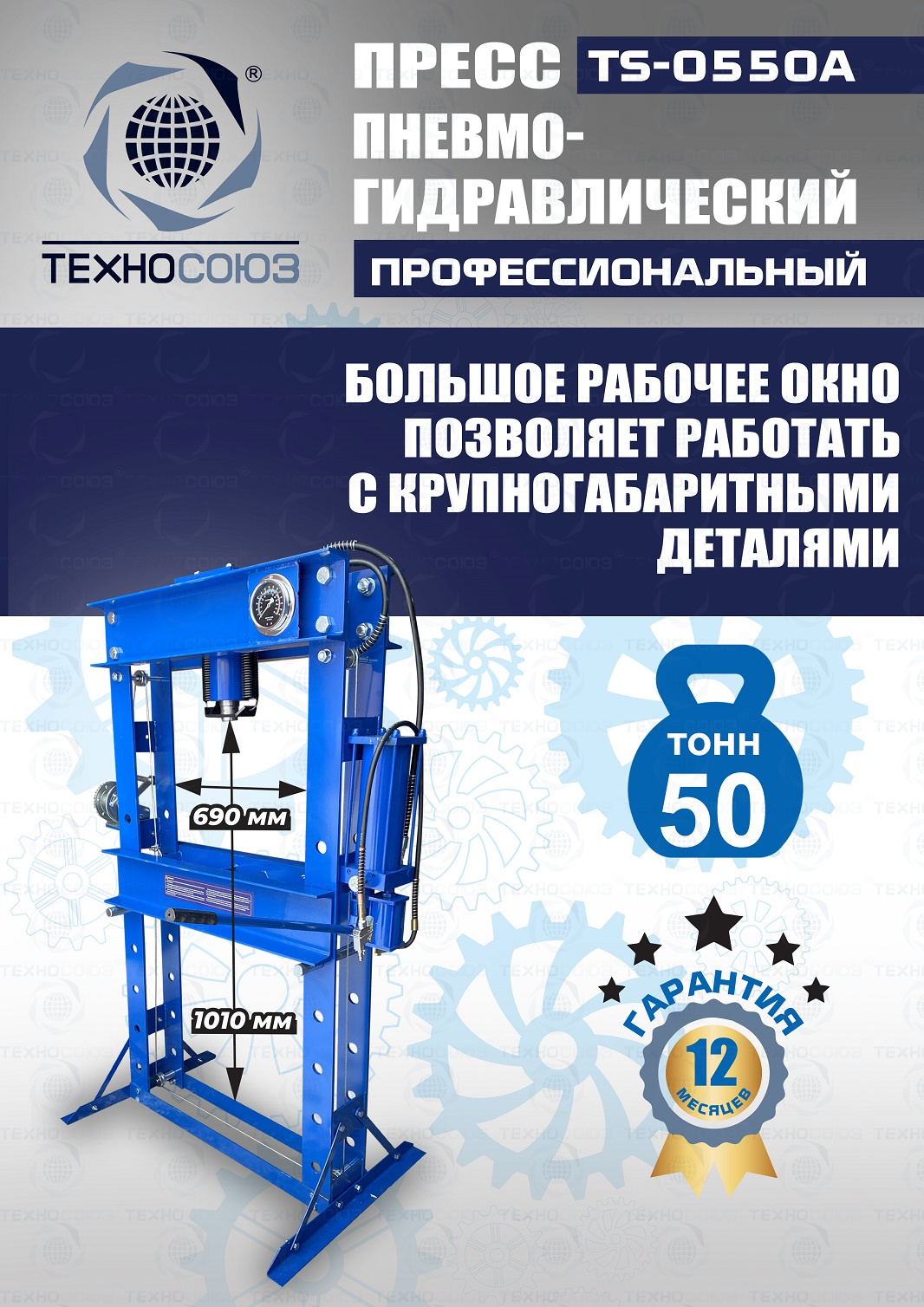 · Пресс укомплектован гидравлическим ручным насосом и пневмогидравлическим с максимальным усилием 50 тонн.