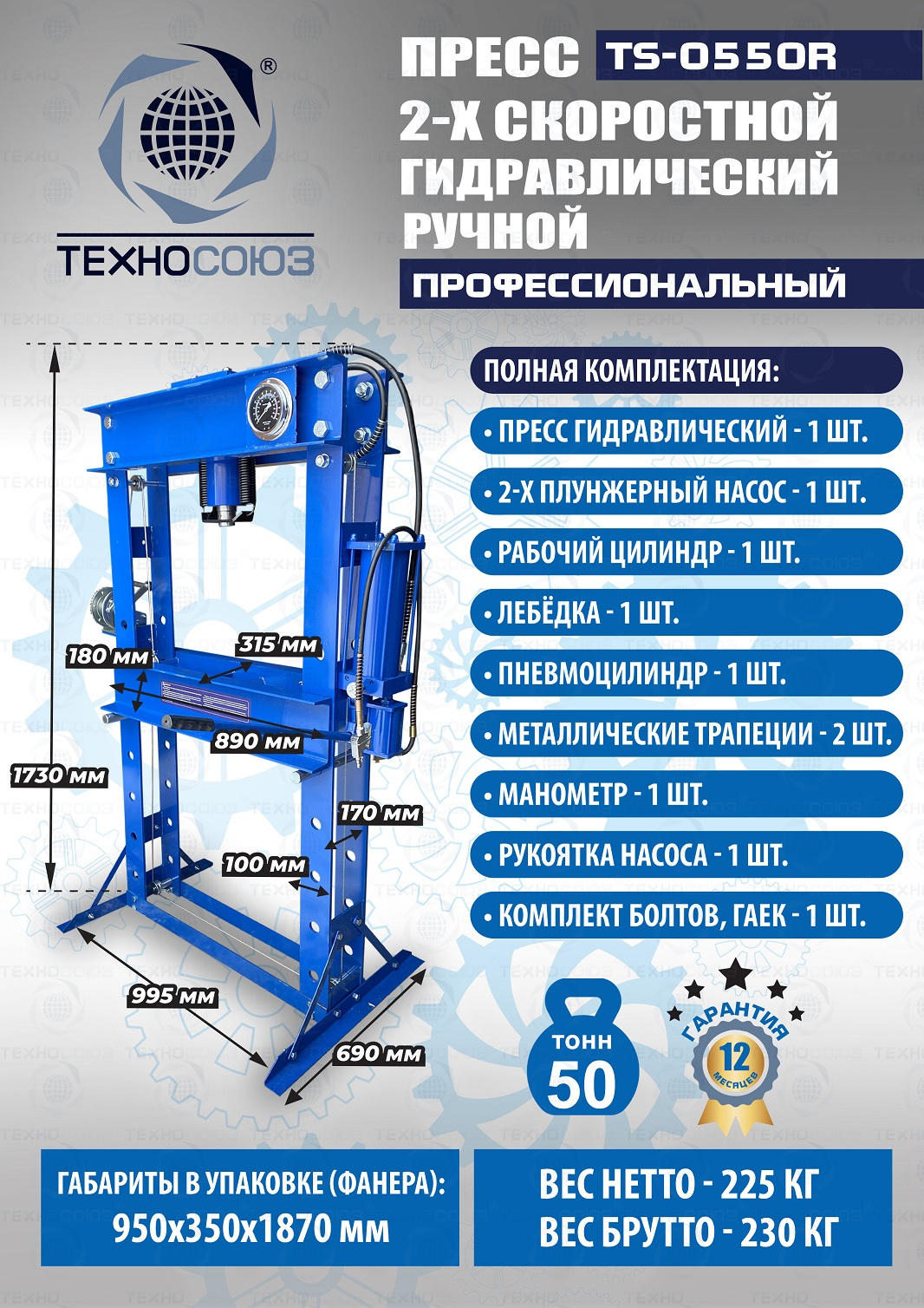 TS-0550A Пресс гидравлический ручной, 50 тонн