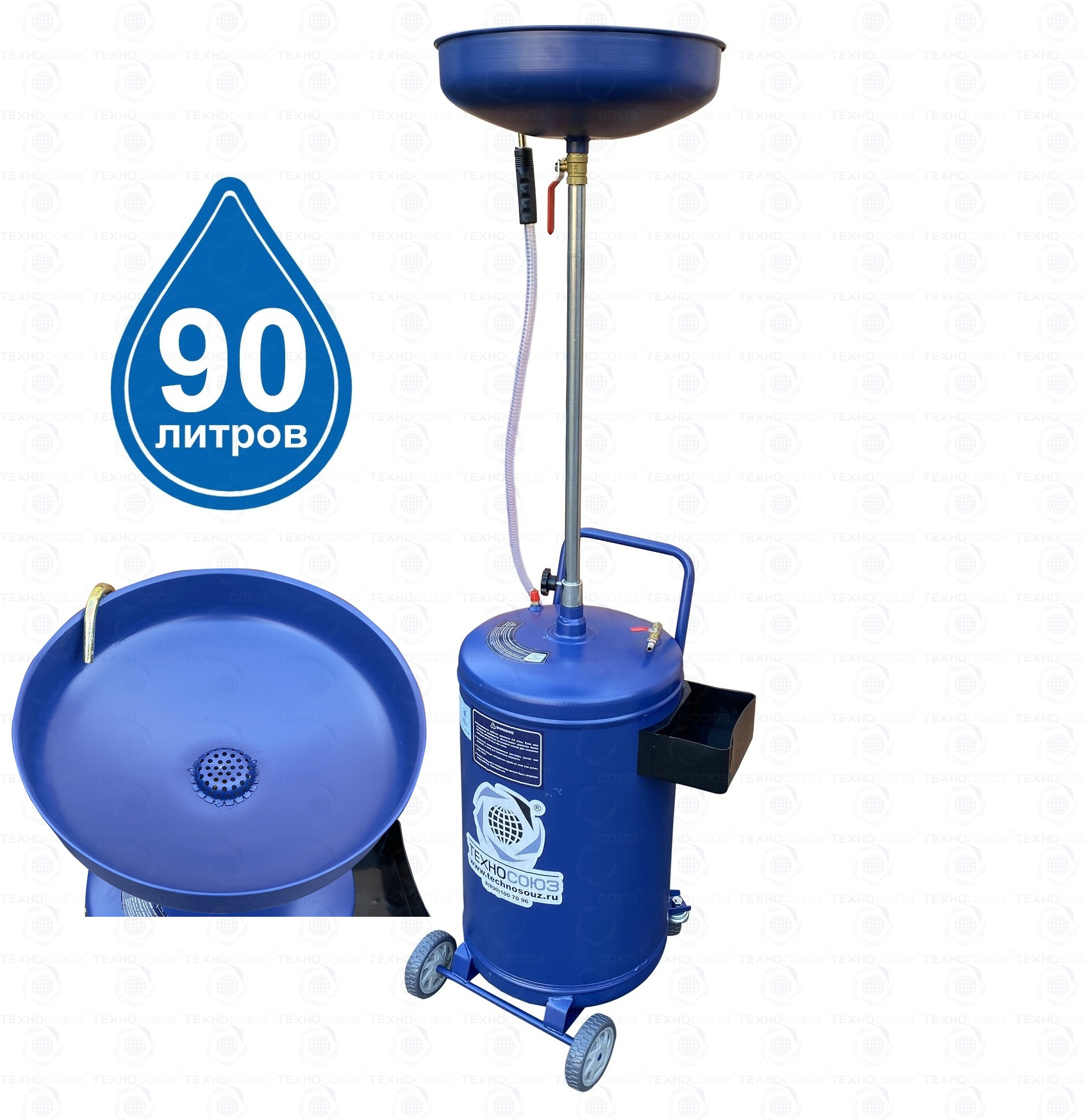 Маслосборник помещает 90 литров отработанного масла и антифриза. Бак 80л и чаша (воронка) 10л.